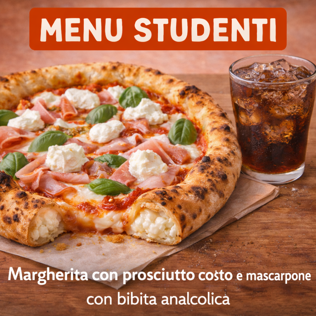 Margherita con prosciutto cotto e mascarpone con bibita analcolica